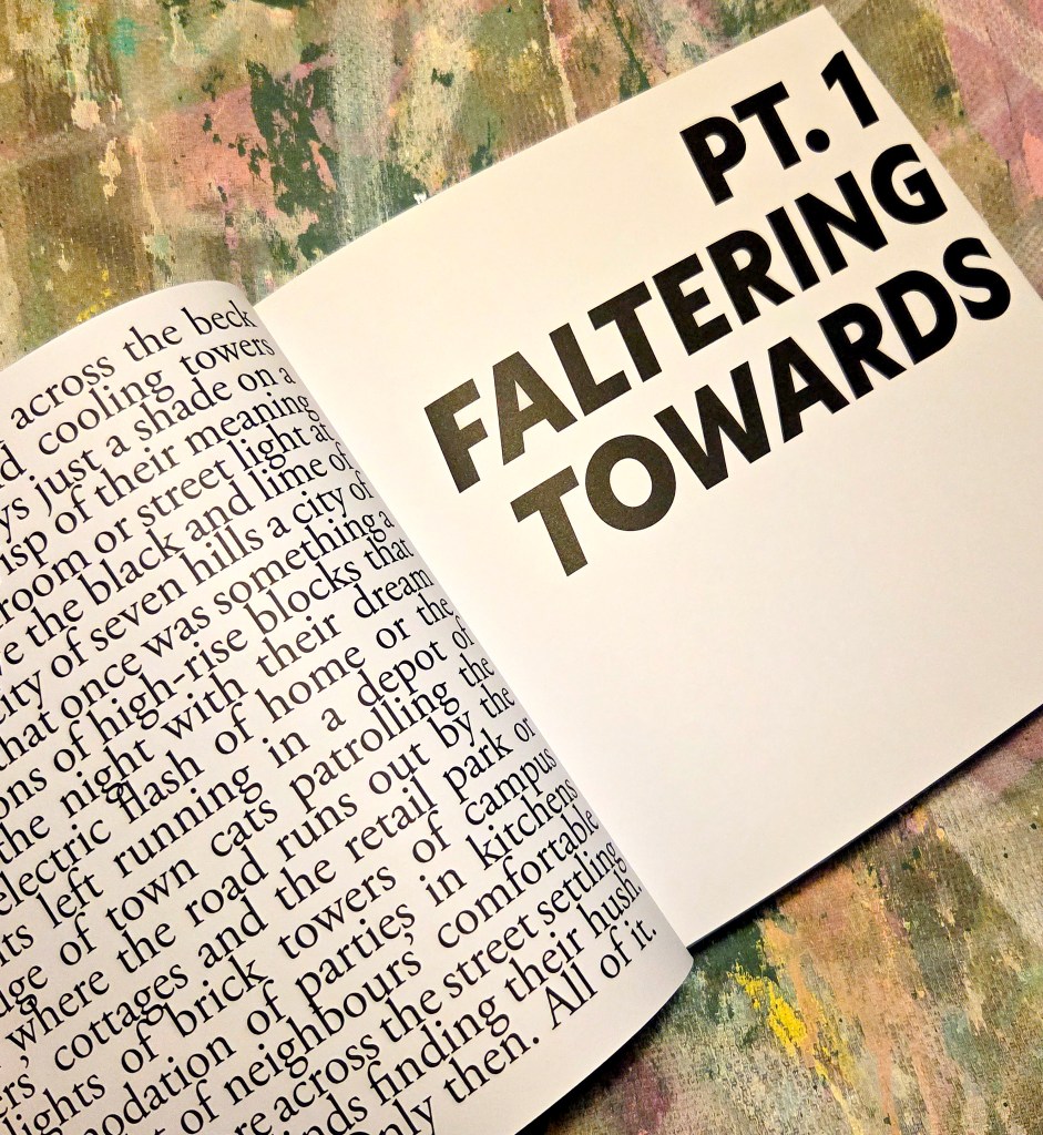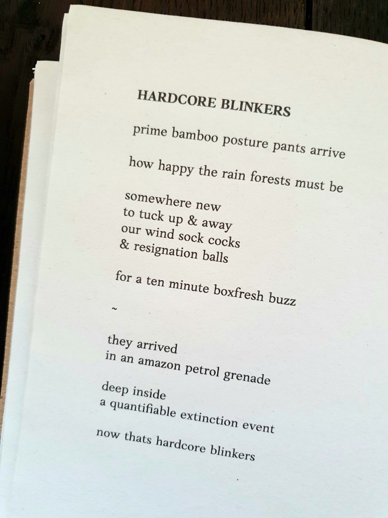 “When I read the manuscript for this book I felt in my bones that this was more than poetry or experimental text. The work is an art piece in it’s own right. The language, the humour, the playfulness, the observation and the exploration, all of it spoke to me as an artwork. So, here it is. Not the small paperback we originally planned but the art object that it is.”