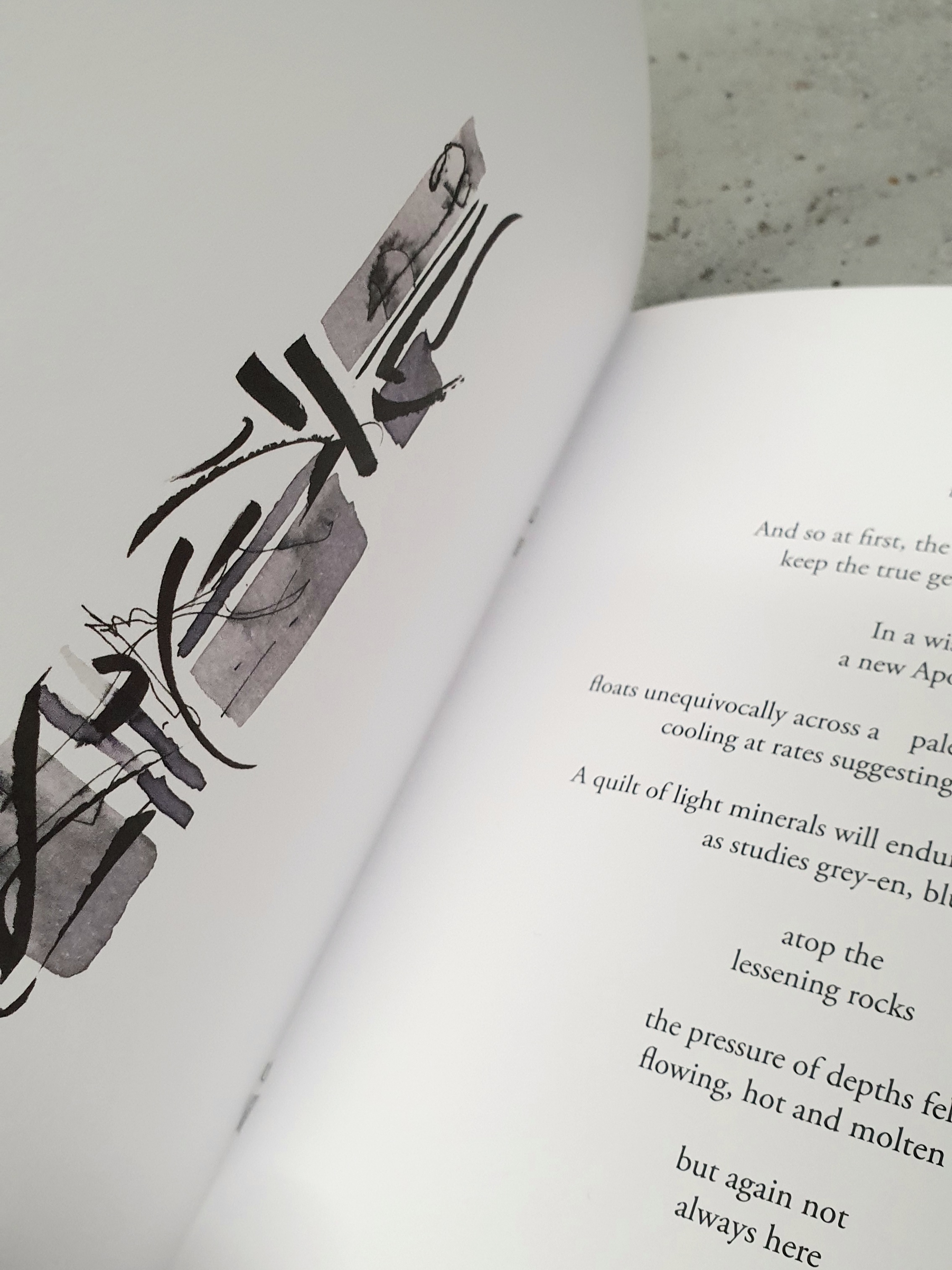 “When I read the manuscript for this book I felt in my bones that this was more than poetry or experimental text. The work is an art piece in it’s own right. The language, the humour, the playfulness, the observation and the exploration, all of it spoke to me as an artwork. So, here it is. Not the small paperback we originally planned but the art object that it is.”